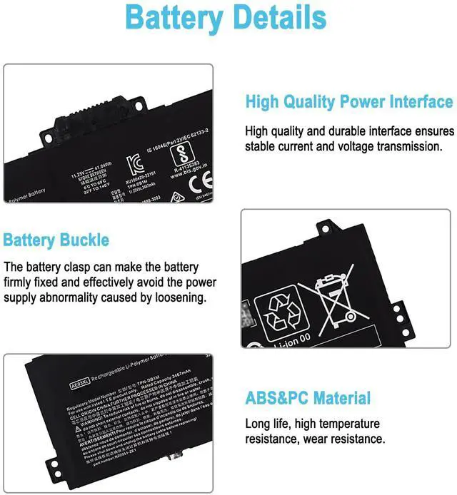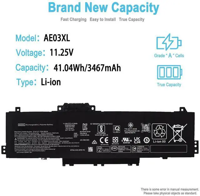 Replacement Battery Part NumbersAE03XL, TPN-DB1N, N2095-AC1, N21969-005, HSTNN-0B3E, HSTNN-OB3E.