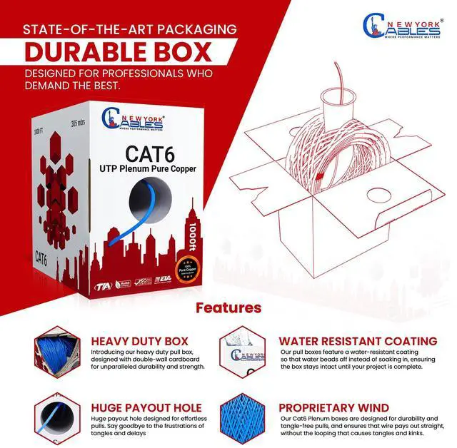 : Our cat6 ethernet 1000ft cmp cable plenum 1000ft is Fire retardant, UV and sunlight resistant plenum rated jackets are designed to meet rigorous fire safety test standards and are recommended to be used in plenum spaces which are usually above suspended/drop ceilings or below raised floors