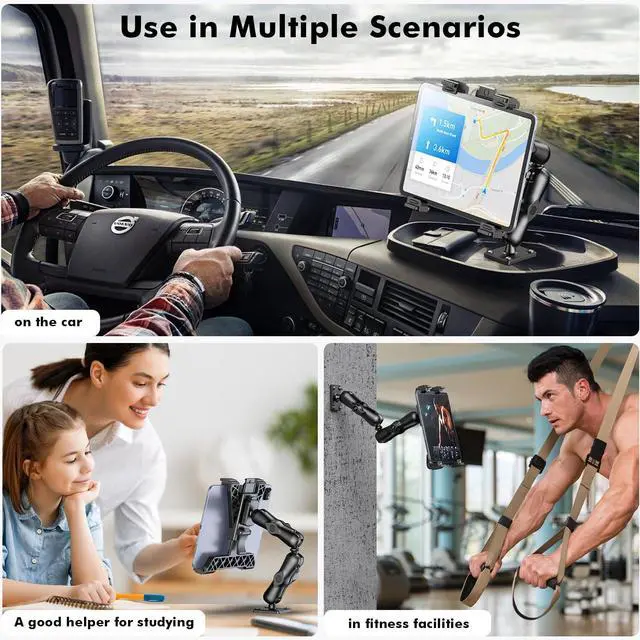 Sturdy Tablet HolderiPad mount car tablet holder with ball joints on both ends for 360° rotation. The 2-section extension arm can adjust the height and navigation angle, is not easy to break, and can withstand the harsh test of potholes, making it a perfect truck accessory.