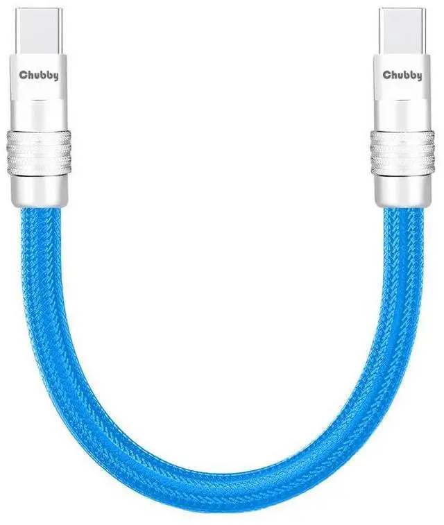 ChubbyCable Short USB C Cable 240W Fast Charging Nylon Braided Charger Cord for Power Bank, Phones, Tablets, Blue, Type-C to C, 1.64FT
