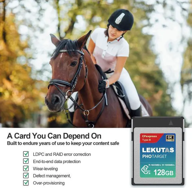 A CARD TO DEPEND ON - By incorporating a range of advanced flash management techniques such as LDPC and RAID error correction, end-to-end data protection, wear-leveling, defect management, and over-provisioning, LEKUTAS CFexpress cards are designed to withstand the test of time and safeguard your valuable content for years to come.