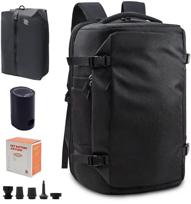 Space-Saving Vacuum Compression System Our innovative large-capacity vacuum backpack features an integrated pump system with Strong Suction and specialized compression bags. Use the included electric pump for rapid compression or manually press to remove air - well-suited for vacuum backpack travel while keeping contents organized