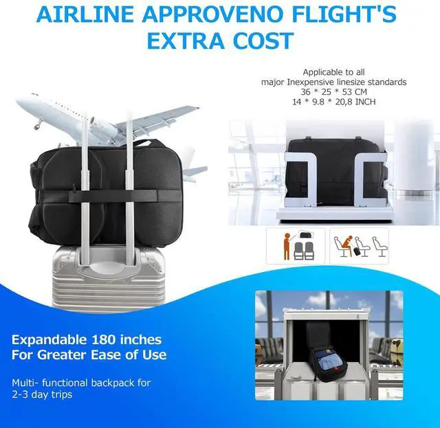 Flight ApprovedThe laptop compartment is friendly designed to be opened 90°-180° for security scanning, helps get through airport security checkpoints quick and easy; And the dimension meets the maximum size requirements by IATA flight, it's ideal for vacuum travel backpack or Travel backpack adventures