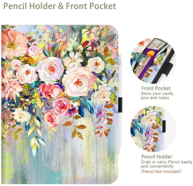 Lalumix for iPad (A16) 11Th/10Th Generation Case 2025/2022,Flower for iPad Case 11Th/10Th Generation,10Th/11Th Gen iPadCase Cover Pencil Holder/Hand Strap/Pocket/Adjustable Stand, Oil Painting Floral