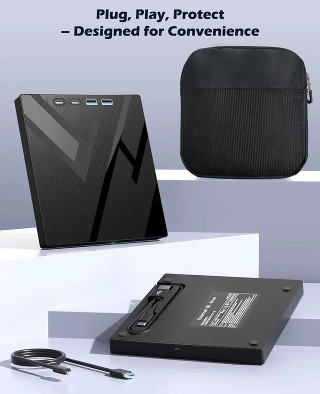 With Protective Carring Case: This external bluray drive comes with a durable storage case, ensuring your drive stays safe and secure when not in use. The case is designed to protect against dust, scratches, and minor impacts, making it perfect for on-the-go use. With the added convenience of a carrying case, you can easily store and transport your drive wherever you need it, keeping it in pristine condition for longer.