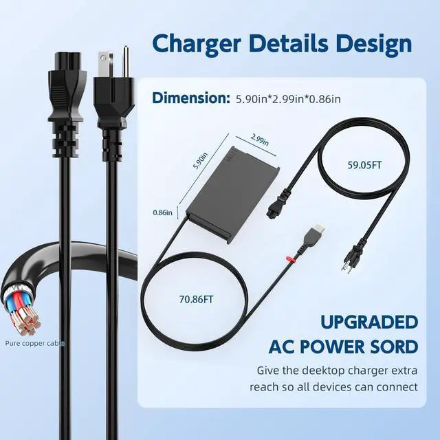 Detailes Color: Black; Input: AC 100-240v 50/60hz Output: DC 20V 8.5A 70W; Connecter: USB; Item Includes: 1x AC Adapter & 1x Power Cable