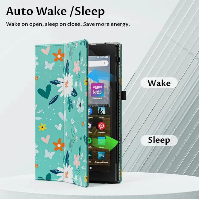 Auto Wake/Sleep: Automatically wakes or puts your Fire HD 8 tablet to awaken when you open the cover and sleeps when you close it, maximizing battery life. Plus, Easy access to all features and controls