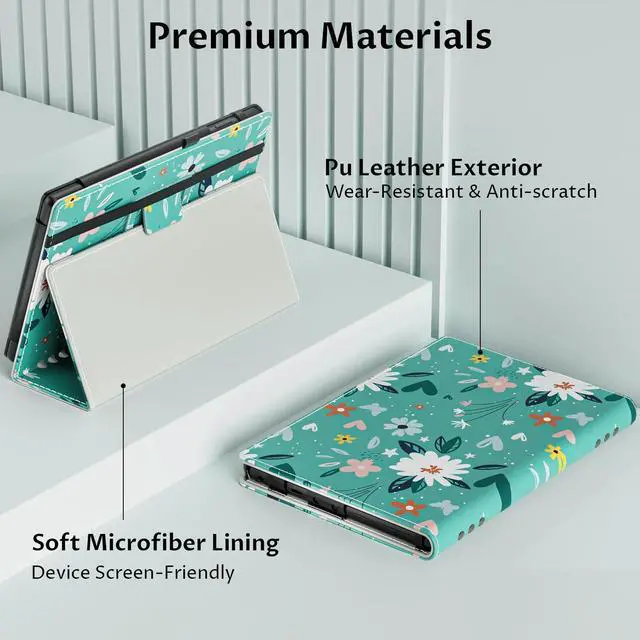Hands-free:Experience the ease of one-handed use with the interior hand strap. The case for Kindle Fire 8 Tablet can be transformed into a horizontal viewing stand, ensuring optimal viewing and typing comfort