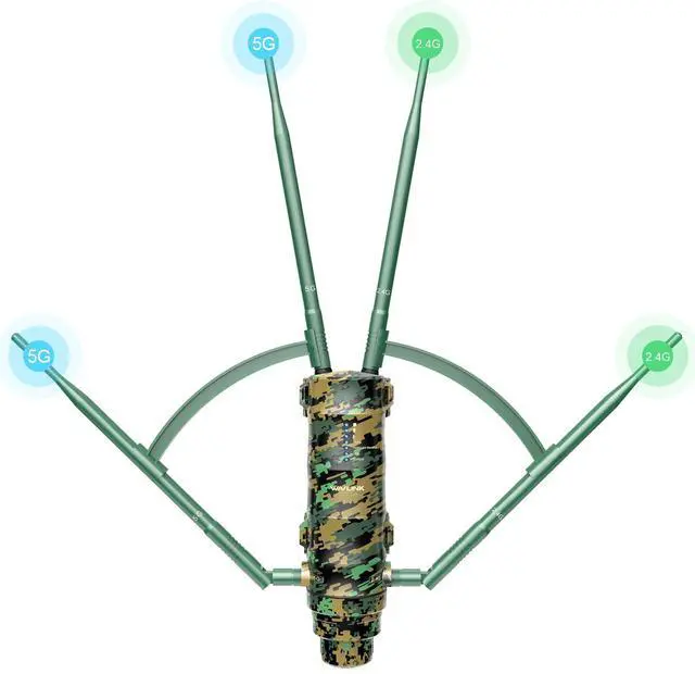 Extended Wi-Fi Coverage with High GainEquipped with dual high-gain 7dBi antennas and 800mW high-power amplifiers, this extender significantly expands your Wi-Fi signal, eliminates dead zones, and enhances penetration through obstacles. Advanced anti-interference technology avoids channel conflicts, making it ideal for large spaces like factories, communities, and streets.