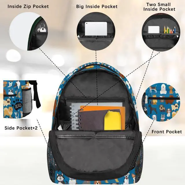 Kawaii Dog Travel Laptop Backpacks Lightweight Travel Hiking Camping Casual Daypack Backpack for Men Women Adults