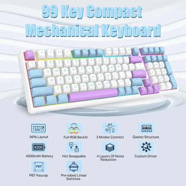 Z-99 Wireless Mechanical Hot Swappable Custom Keyboard, 96% RGB Backlit Tri-Mode BT 5.0 / 2.4GH z/USB-C, Pre-lubed Linear Switches, Gasket Structure, Gaming Keyboard, Software Support