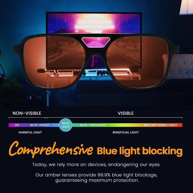 Advanced Blue Light Filtering: Equipped with orange tinted lenses that are specially designed to filter out blue light, these glasses by SODQW are your first line of defense against digital eye strain. Whether you're working on a computer, binge-watching your favorite series, or immersed in an intense gaming session, your eyes will thank you.