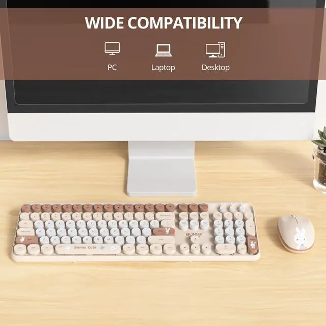 Retro Round Keycaps & Silent Mouse Vintage typewriter-inspired rounded keycaps deliver comfy typing and a spunkier desk vibe. The cute wireless mouse clicks quietlyno distractions. This retro wireless keyboard and mouse combo adds flair to any setup.
