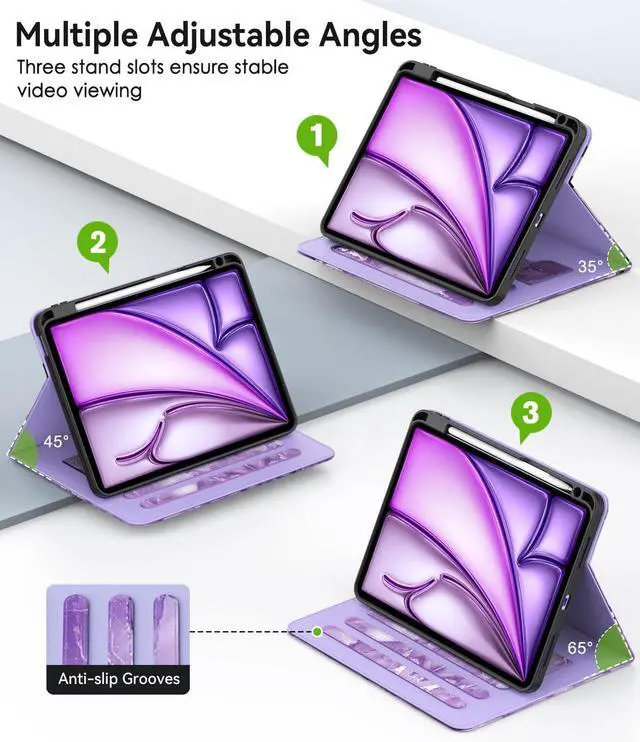 ZoneFoker Case for iPad Air 11-inch M3/ M2 (2025/2024), iPad Air 5th/4th Generation 10.9 '' (2022/2020), iPad Pro 11 (4th/3rd/2nd/1st Gen), Multi-Angle Stand Cover with Pencil Holder, Marble Purple