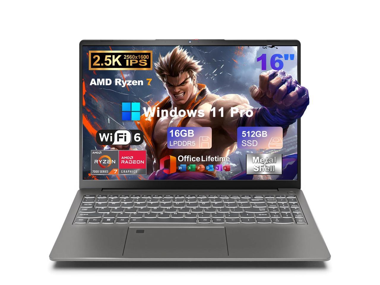 2025 16 Inch 2.5K IPS Gaming Laptop Computer, AMD Ryzen 7 6800H (Up to 4.7GHz), 16GB DDR5 512GB SSD, AMD Radeon 680M, WiFi 6, Type-C, Webcam, Fingerprint, Backlit Keyboard, Windows 11 Pro w/ MS Office