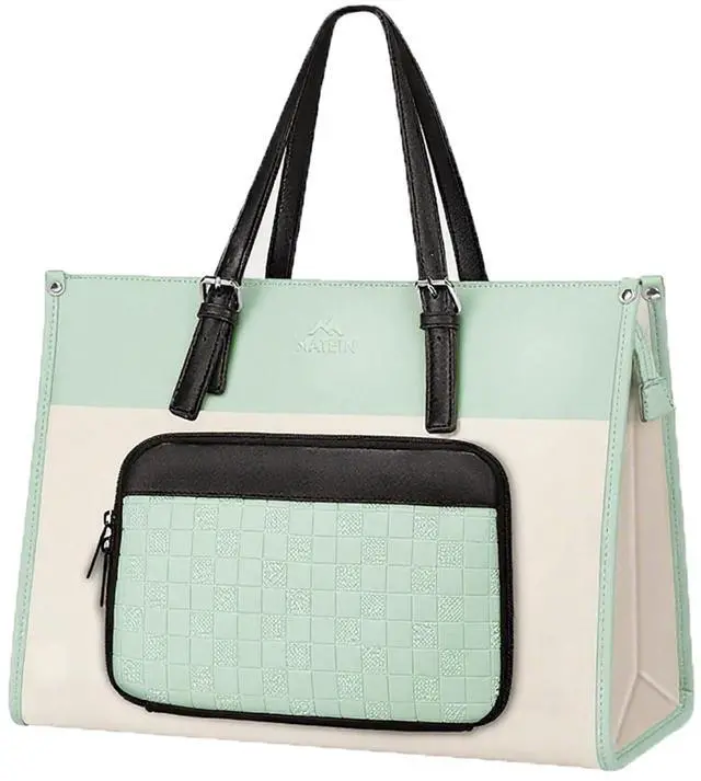 MATEIN 2 in 1 Tote Bag Lunch Bag Combo, 15.6 Inch PU Leather Briefcase for Laptop, Multi Compartment Lunch Handbag Purse for Women, Leakproof Work Tote with Cooler Bag for Picnic, Pale Green