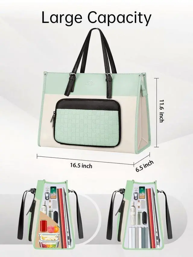 Perfect Size & Practical Design: This laptop tote bag size: 16.5" x 6.5" x 11.6"(L*W*H). Insulated lunch compartment of this work bags for women tote professional is 10" x 6.5" x 6.5"(L*W*H). Net weight: 2 lb. Extra mesh pocket inside for utensils, napkins and other small items, and easily accessible. The adjustable handle is 9.5 to 11.5 inches long. Top soft handle provides portable carrying experience. Use it as lunch tote bag, computer bag, lunch tote work bag, handbag as you like