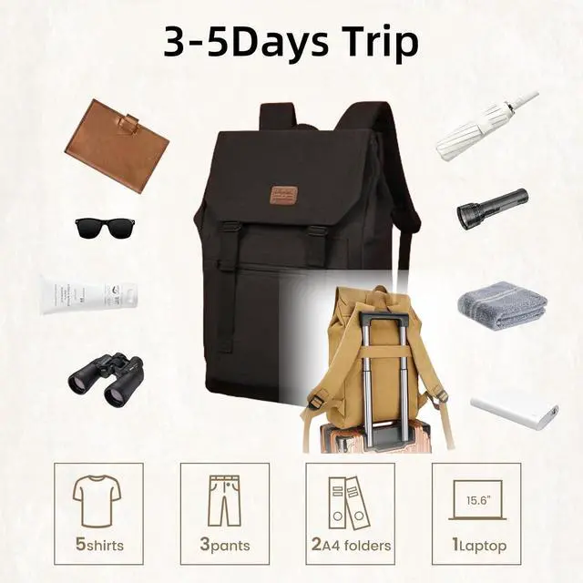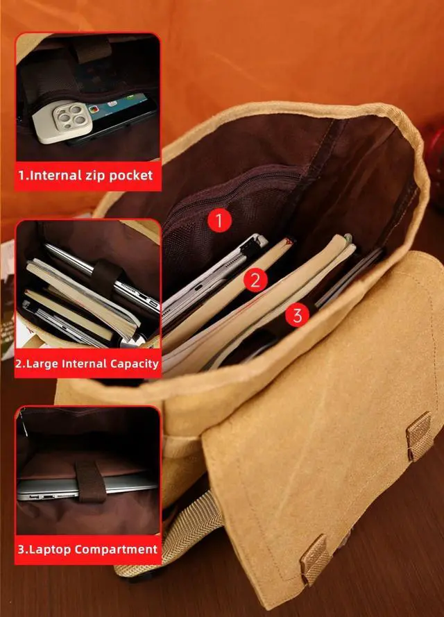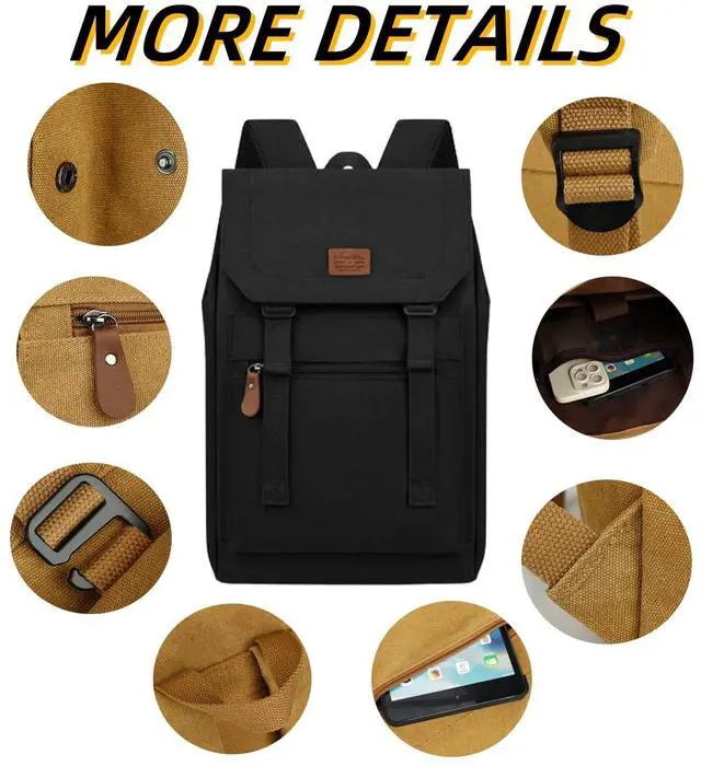 DURABLE CANVAS BACKPACK - Made of high-density canvas, lightweight, soft, strong and durable, with PU leather trim; can be used as a shoulder bag or shopping crossbody bag.