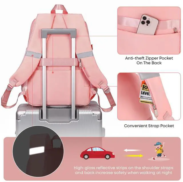 qodbopack School Backpack For Student Women College Middle High Teen Girls Bookbag Waterproof Laptop Bag Pink