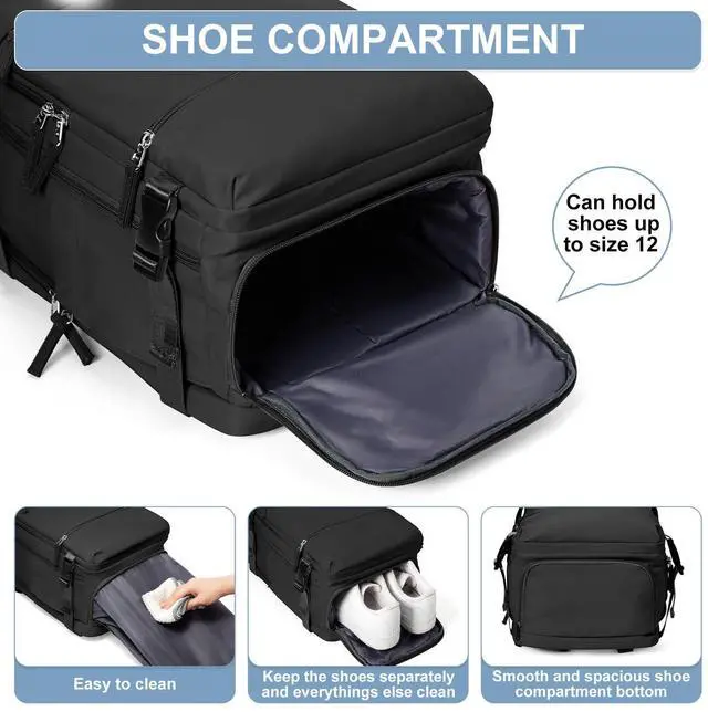 INDEPENDENT SHOE COMPARTMENT AND WET POCKET: The shoe compartment can hold a pair of slippers or sneakers, allowing you to switch freely between different travel, business trip and outdoor sports status. The wet pocket is designed for storing wet towels, wet clothes, toiletries, etc., making your stay in the hotel or apartment more convenient.
