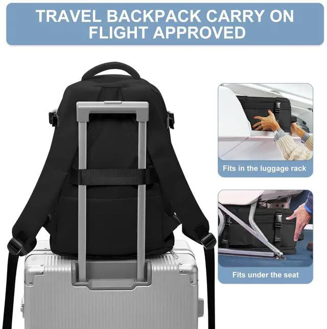 Travel Backpack Simple Durable Carry On Backpack with Shoe Compartment, Personal Item Travel Bag Flight Approved, Water Resistant Laptop Backpack for Women Men Weekender Business, Black