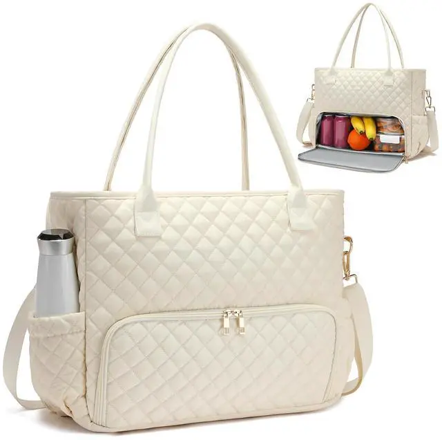 AHHZOOPLL 2-in-1 Lunch & Laptop Tote Bag 15.6" Work Bags for WomenWater-Resistant Polyester CasualInsulated Leakproof Lunch CompartmentTeacher Nurse BagLaptop Briefcase for Office TravelBeige
