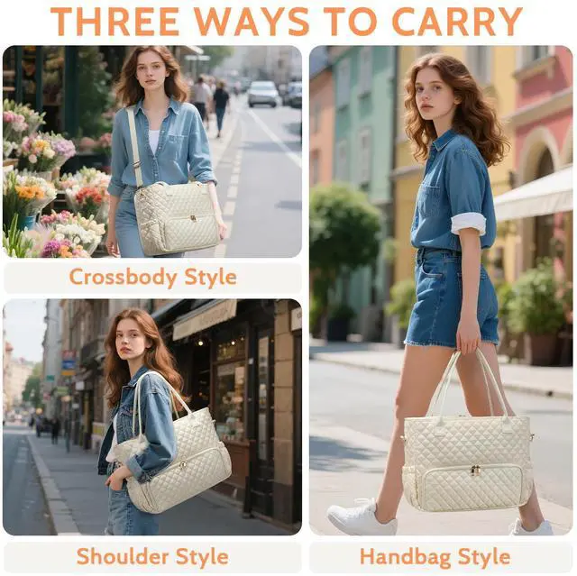 Large Lunch Tote & Work Bag Combo: Featuring a dedicated insulated lunch compartment. Pls check the dimensions of the lunch section (L×W×H: 14.5"×5"×6") and the overall tote (L×W×H: 16.9"×6.7"×12.6") to match your meal portion needs and extra storage space. It keeps food warm or cold, combining professional use with convenient meal carrying. This versatile tote eliminates the need for extra bags, freeing your hands, making it an ideal choice for office commuters who bring homemade meals