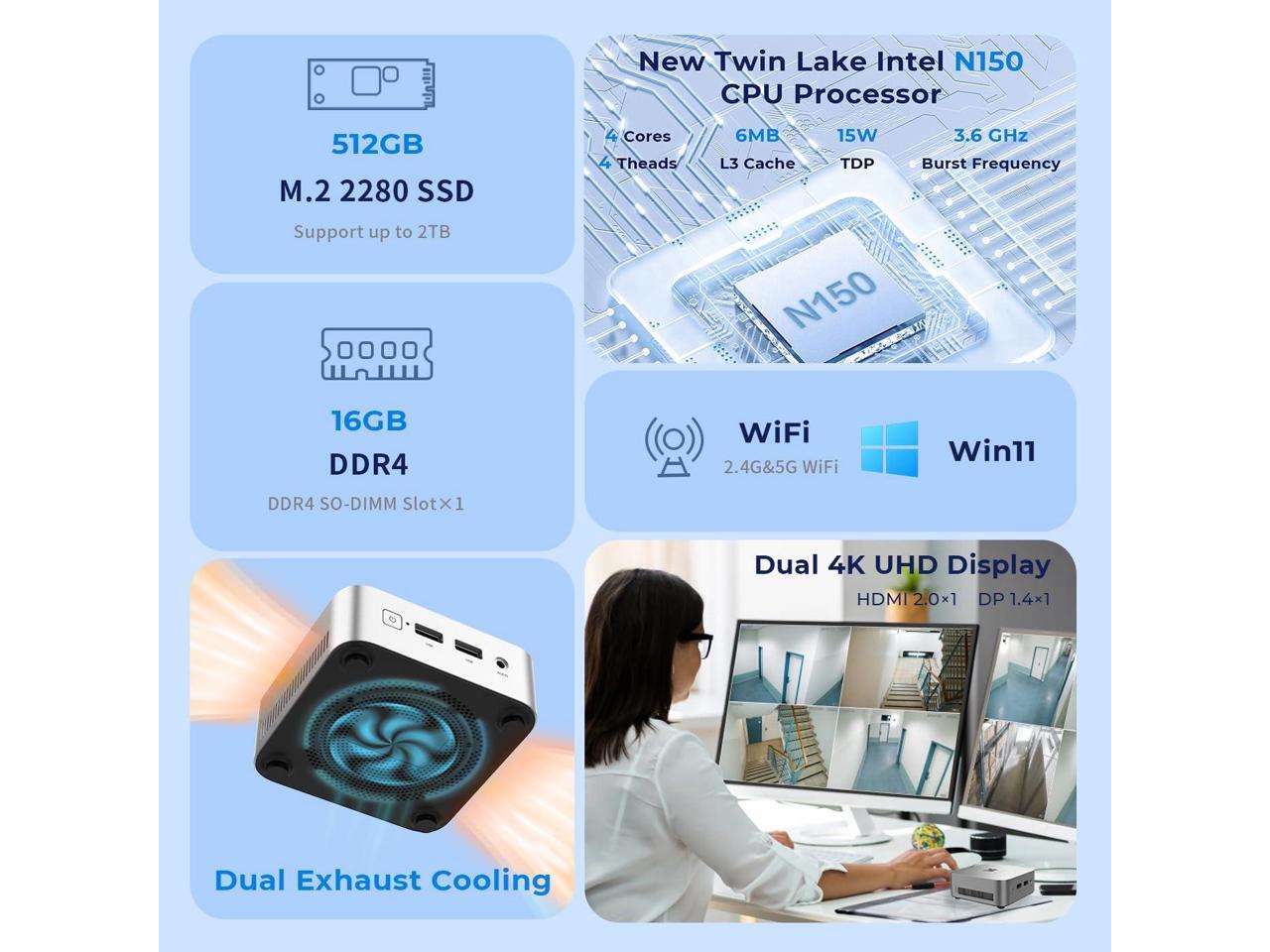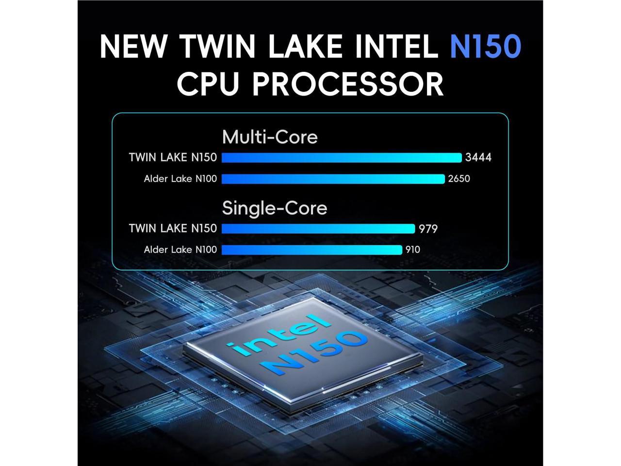 - NEW ENERATION CPU-N150 Newest Twin Lake N150 (3.6GHz, 4x cores, 4xThread,6M Cache). MegaPC D01 MINI PC N150 CPU performance +30%, GPU +70%, more powerful performance and smoother running. Intel UHD Graphics 1.0 GHz handles like browsing internet, reading email, editing documents, home office and more with ease, even for professional uses like photos editing.