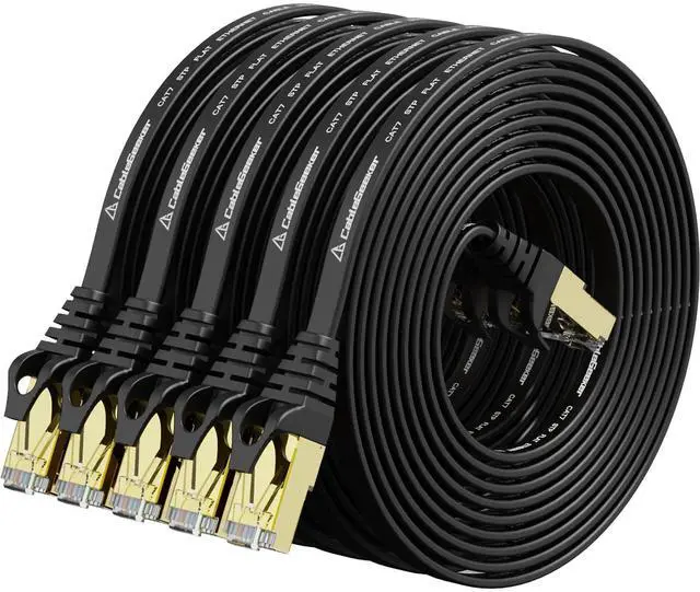 Cat 7 Ethernet Cable 10ft 5Pack Shielded (Highest Speed Cable) Flat Ethernet Patch Cables - High Speed Internet Cable for Modem, Router, LAN, Computer - Compatible with Cat 5e, Cat 6 Network