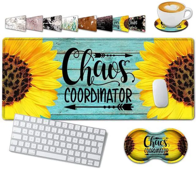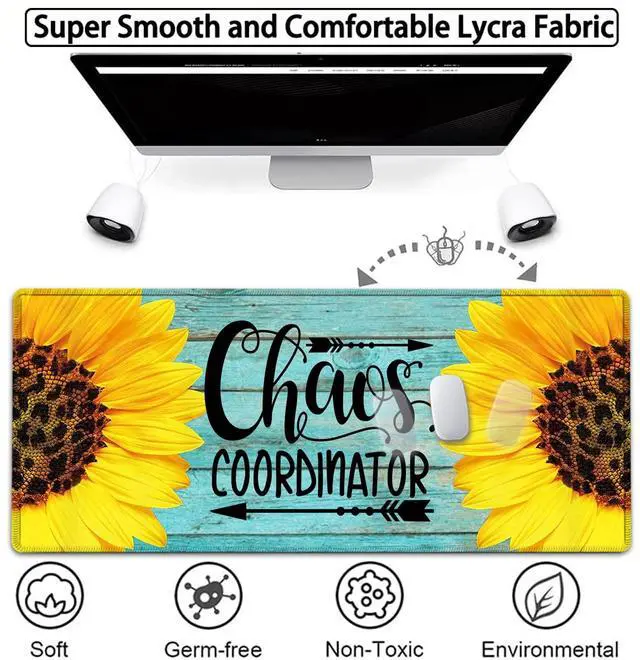 Large Gaming Mouse Pad, 31.5x11.8in Extended Computer Mouse Mat with Non-Slip PU Base,Ergonomic Memory Foam Keyboard Wrist Rest,for Work Gaming,Sunflower Chaos Coordinator Blue Office Desk Pad