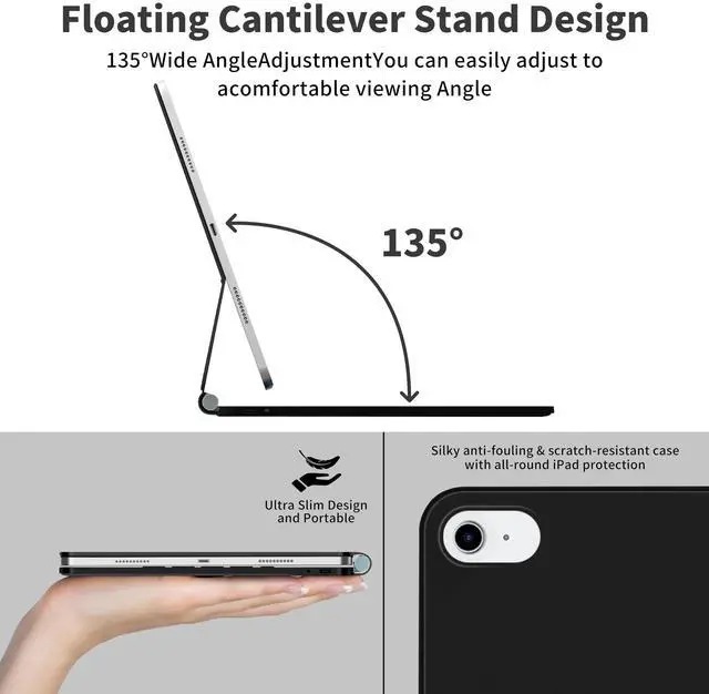 Quick-Set Magnetic Stand: Featuring multiple reinforced magnets for ultra-secure hold, this stand attaches to your iPad 10th/11th Gen in seconds. The smooth-floating design offers perfect 135° positioning for typing, drawing, and watching - stays firmly in place whether you're working at a desk or using it on your lap. Sets up instantly for home, office or travel use.