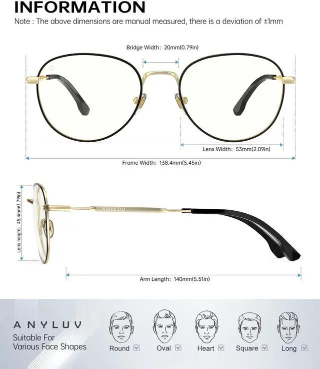 Blue Light Blocking Clear vision: ANYLUV Blue Light blocking glasses filter harmful wavelengths (380-450nm) from screens. HD lenses prevent color distortion so you can see more clearly in dim zones while reducing migraines after 8-hour COD marathons.