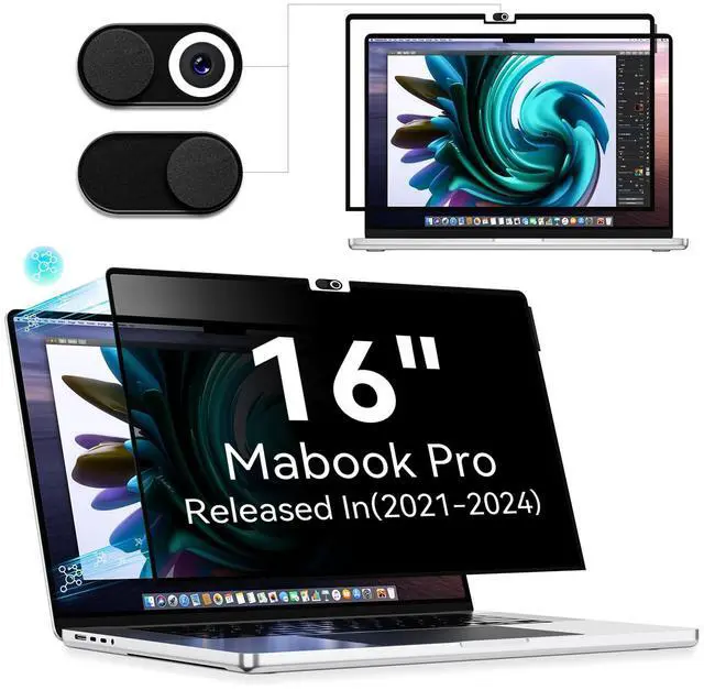 Ultimate Privacy ProtectionMacBook Pro 16 inch privacy screen with unique ultra-thin micro-louver technology, our computer privacy screens limit the viewing angle to approximately 30 degrees on each side. Thus protecting your laptop screen data. (Note: this does not block the view behind you). Additionally, our complimentary sliding camera cover further protects your privacy.