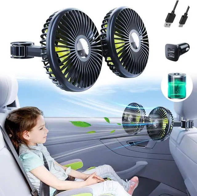 [ Rechargeable Car Fan Comes with Car Charger and USB C Cable ] -- The 2000 mAh battery fan for car seat baby can last for 1-3 hours depending on the wind power. Compared to other car fans, this rechargeable car fans for backseat for kids makes more convenience use to you in summer. The protable battery car fan for back seat equipped with car charger and 70 inch type c charging cable, widely compatible with laptop, power bank, car charger and other USB-enabled devices. It is a must-have for you and your family and friends to have a cool trip.