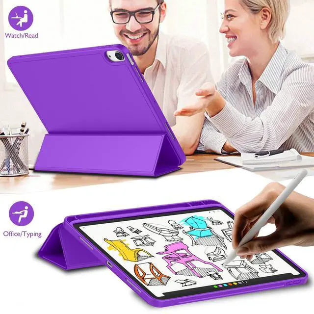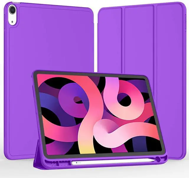 iMieet iPad Air 11 Inch Case M3 (2025) / M2 (2024), iPad Air 5th/4th Generation Case 2022/2020 10.9 Inch with Pencil Holder, Trifold Stand Smart Case with Soft TPU Back (Grape Purple)