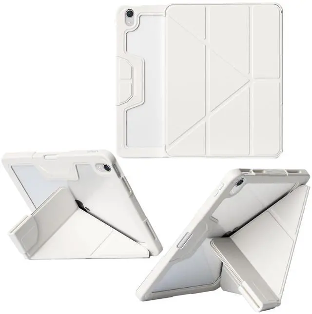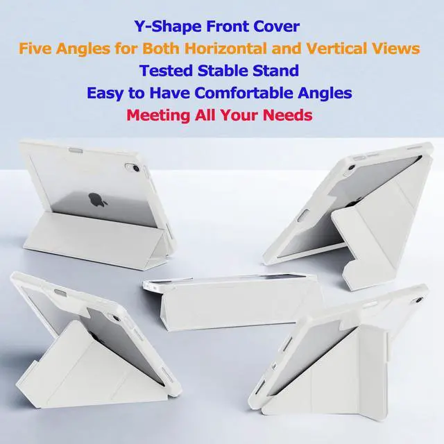 Five Angles: The Y-Shape front cover can be folded to 5 different angles for typing, drawing, video calls, reading and watching videos. You can easily change from horizontal views to vertical views with strong build-in magnetic strips.