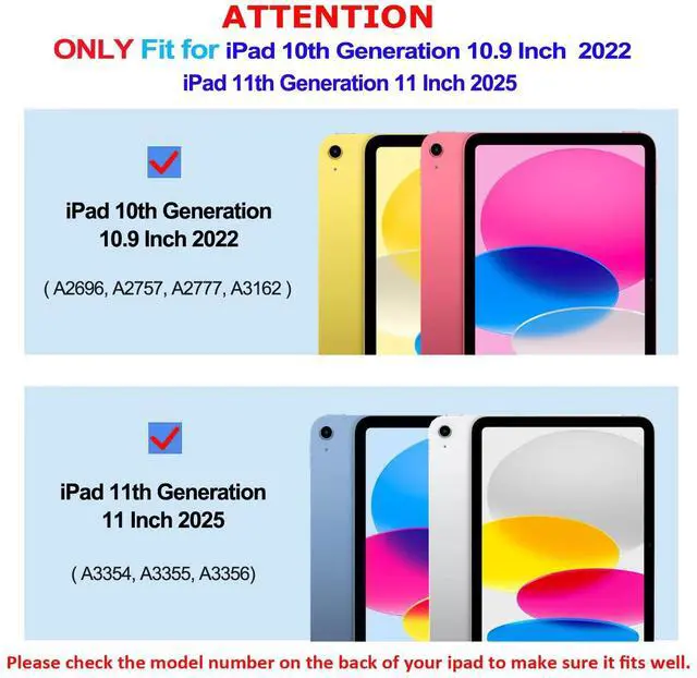 Perfect Compatibility: Specially designed for iPad (A16) 11th generation 11-inch 2025 (Model Number: A3354,A3355,A3356), iPad 10th Generation 10.9 inch 2022 (Model Number: A2696 A2757 A2777 A3162). Not compatible with any other devices.