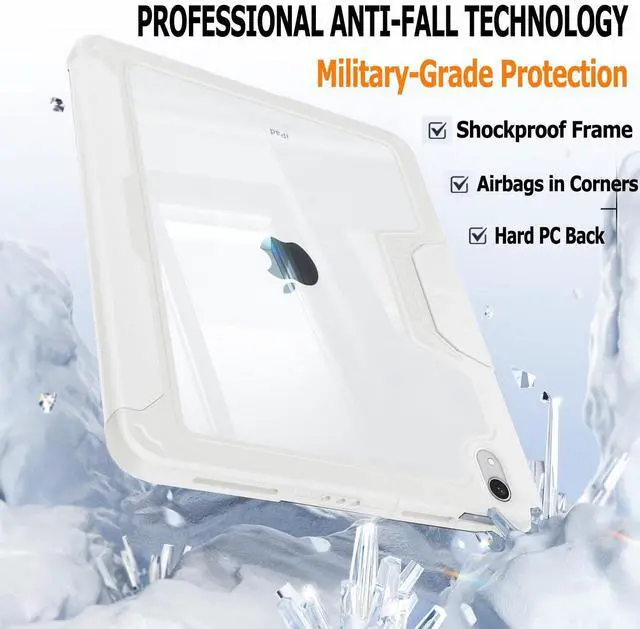 Shockproof Case for iPad (A16) 11th Generation 11 Inch 2025, iPad 10th Generation 10.9 inch 2022 with Pencil Holder, Military Grade Protection, Clear Acrylic Back Shell, Camera Protector (White)