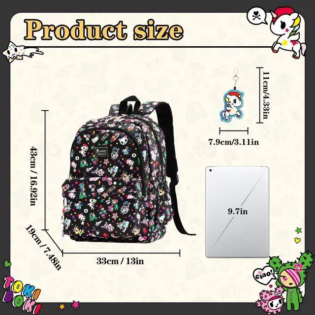 Officially Licensed Tokidoki DesignThis authentic tokidoki backpack comes with a charming unicorno keychain, adding a playful touch to your style while showcasing your unique fashion sense.