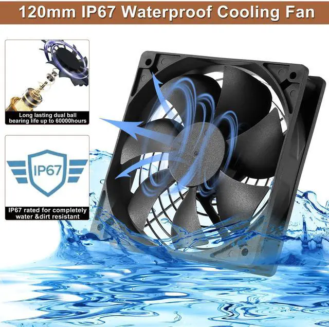 IP67 Waterproof & DustproofThis 120mm 12 volt fan features IP67 waterproof & dustproof tech, perfect for outdoor/rv/boat use. Verified test to be submerged up to 0.05m for 4 hours.