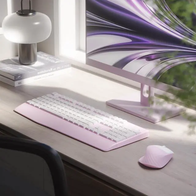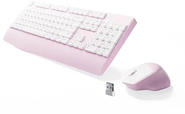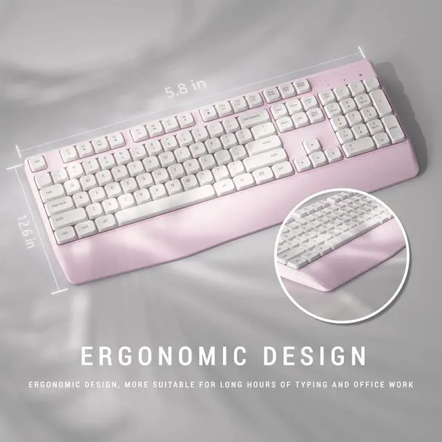 MPTOG Ergonomic Keyboard and Mouse Combo with Wrist Rest, BK Chipset, Full-Size Colorful Office Keyboard and Mouse, Power Button, USB Receiver for PC Laptop(Pink White)