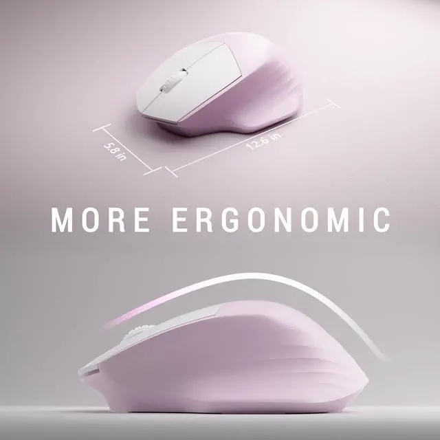 Comfo Mouse with Silent Clicks & Power Button Ergonomic wireless mouse features whisper-quiet buttons for minimal noise and a convenient power switch to conserve battery when not in use