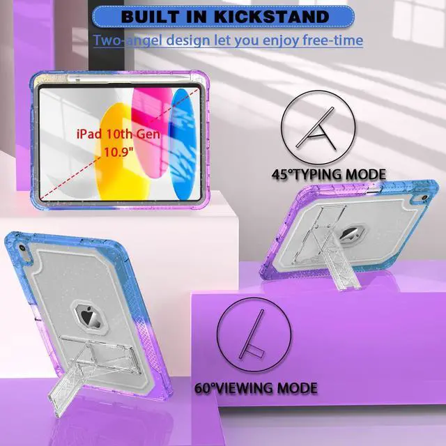Shockproof Rugged Design: 2 In 1 structure of hybrid material back shell and hard front casing effectively protects your New iPad 10th Generation 10.9 inch 2022 from scratches and accidental drops, bumps, and impacts