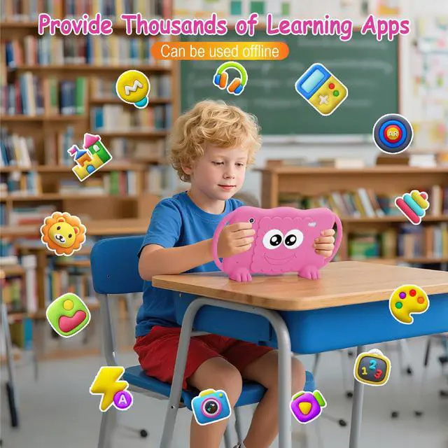 New Full-Featured Kids TabletEquipped with a high-speed Android quad-core processor, this baby tablet ensures smooth app performance and fast page loading. With 2GB RAM and 32GB ROM (expandable up to 1TB via Micro SD), your child can store more photos, videos and educational content. The tablet for kids 3-12 features a long-lasting 8-hour battery to keep young minds entertained during road trips, flights or at home