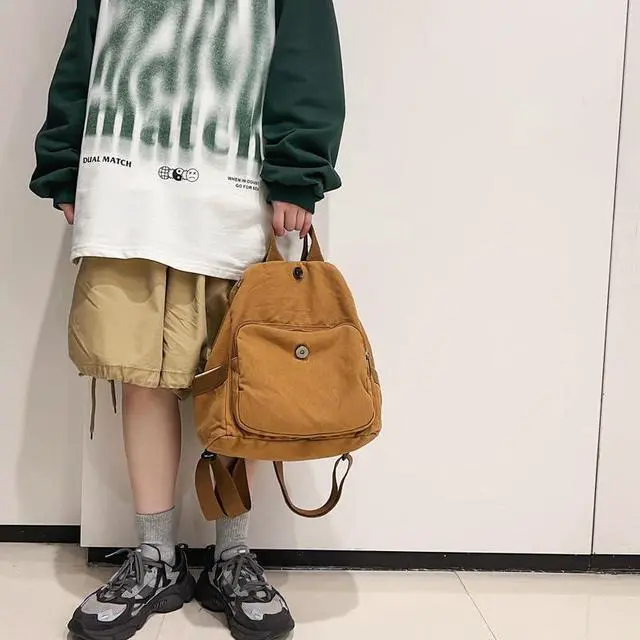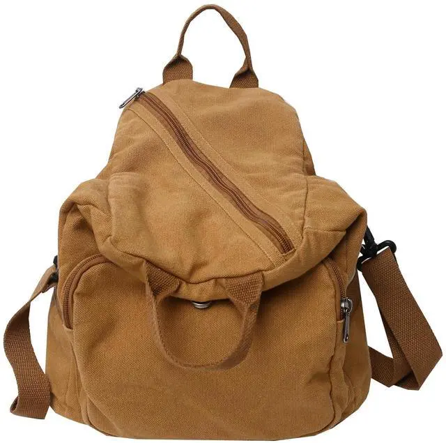 Spacious and Functional Design: This lightweight and sturdy mini canvas backpack features multiple storage pockets, providing ample space for your daily essentials. With dimensions of L9.8 x W5.5 x H12.6 inches, it can easily accommodate your cellphone, iPad, umbrella, charging cables, wallet, clothes, water bottle, cards, cosmetics, and more.