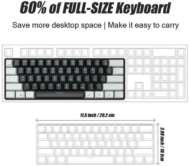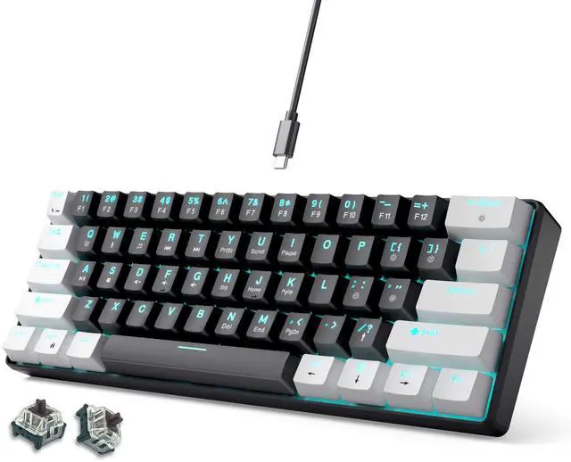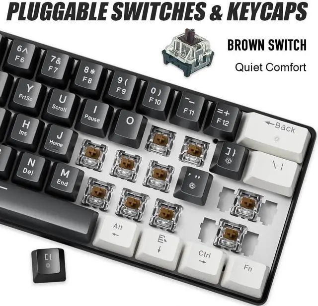 abucow 60% Mechanical Gaming Keyboard Brown Switch Wired Compact Keyboard Anti-Ghosting No-Conflict 61 Swappable keycaps Ergonomic Design for Windows/Mac