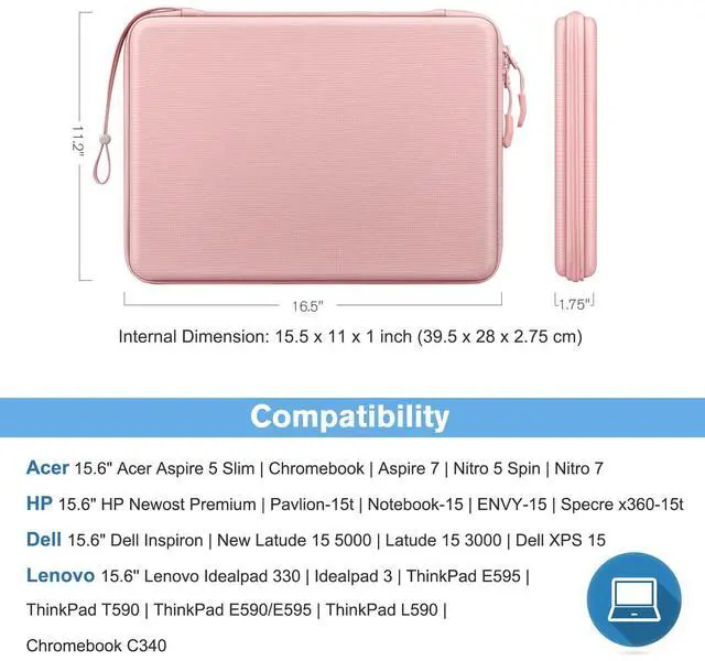15.6 Inch Laptop SleeveExternal Dimension: 16.5 x 11.2 x 1.75 inches, this computer laptop bag perfectly fits 15.6 laptops and beneath. Id
