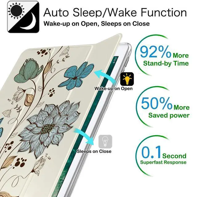 • DuraSafe Cases for iPad 9.7 Inch 5 6 Air 1 2 [iPad 5th 6th Air 1st 2nd] A1893 A1954 A1822 A1823 A1566 A1567 A1474 A1475 Printed Soft Silicone Transparent Front & Back Cover -Watercolor Flowers
