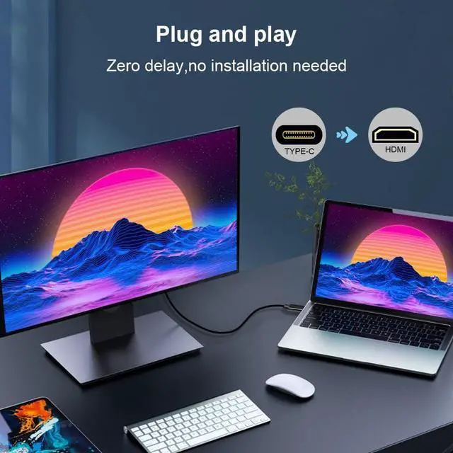 Experience plug-and-play simplicity to enjoy crystal-clear 4K@60Hz videos, effortlessly streaming from your phone, tablet, laptop, or desktop to larger displays like monitors. Backward compatible with 1440p/2K@144Hz and 1080p@240Hz/165Hz. Immerse yourself in an HDR-enabled viewing experience, showcasing lifelike details and superior visual quality. *Note: one-way chord, only transfer videos from USB-C devices to HDMI displays