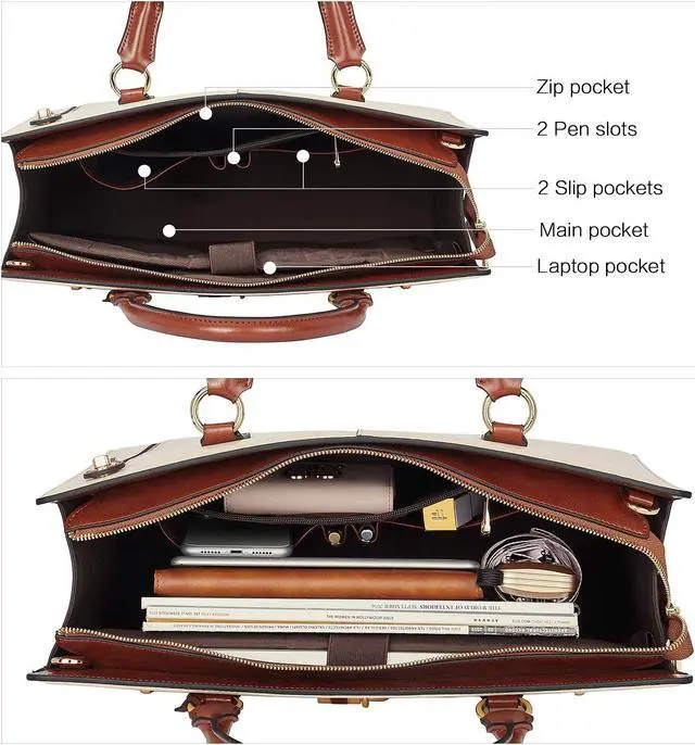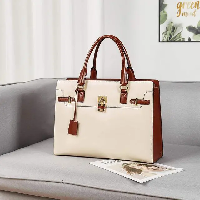 Top Quality&Design - This briefcase for women is made of genuine cow leather,matching with durable goldern hardware and soft durable fabric lining. The unique brand tag and vintage lock decoration are more elegant and extravagant,it can be matched with any clothes and occasions